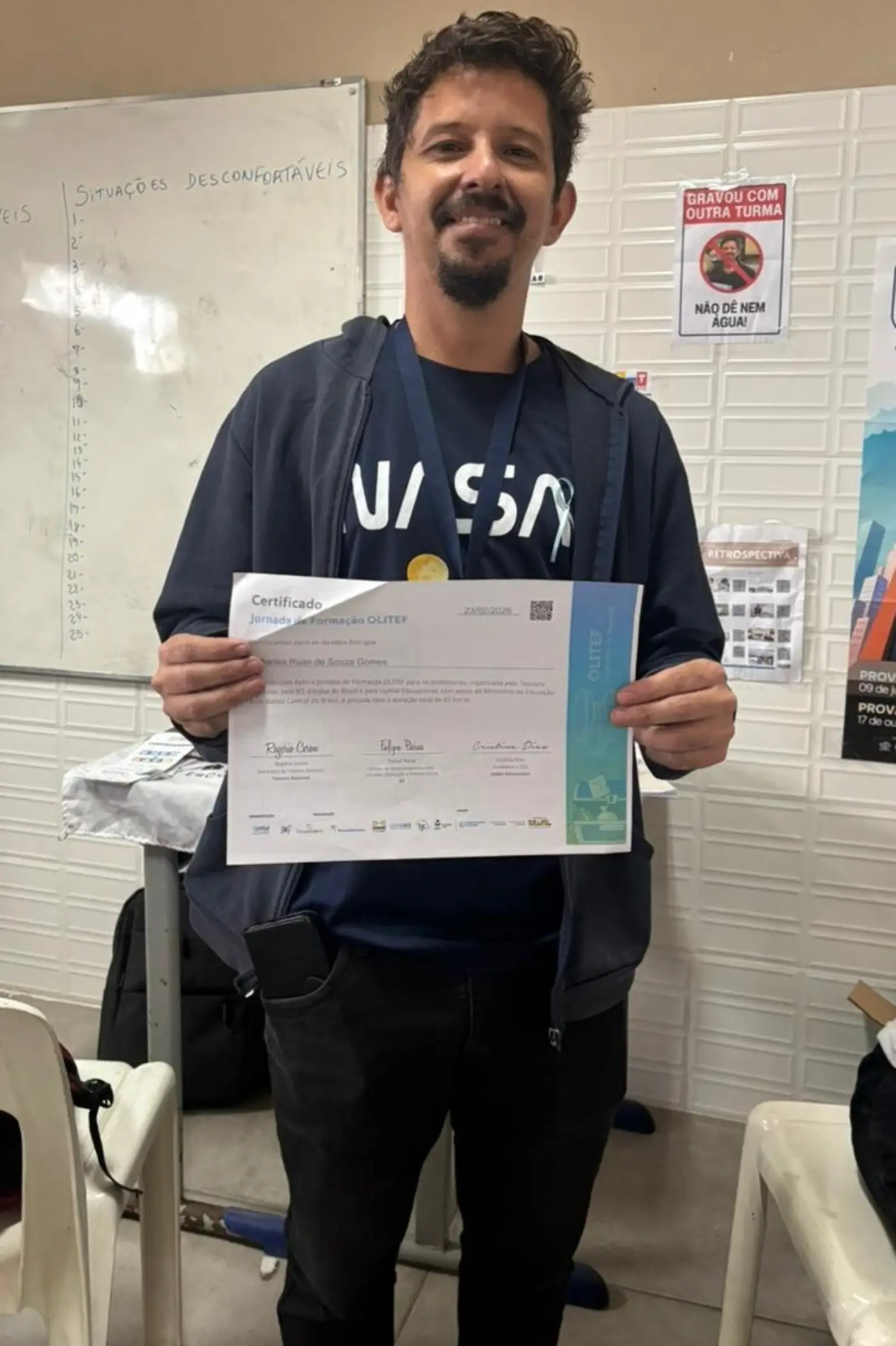 "No ano passado, foi minha segunda participação na Olitef. Na primeira, conquistei medalha de prata, e na segunda, medalha de ouro. Quando vi o resultado, fiquei extremamente feliz e empolgada, pois a olimpíada me trouxe novos conhecimentos, principalmente em matemática. Me senti realizada por ter alcançado essas conquistas e espero, neste ano, obter novos resultados.”