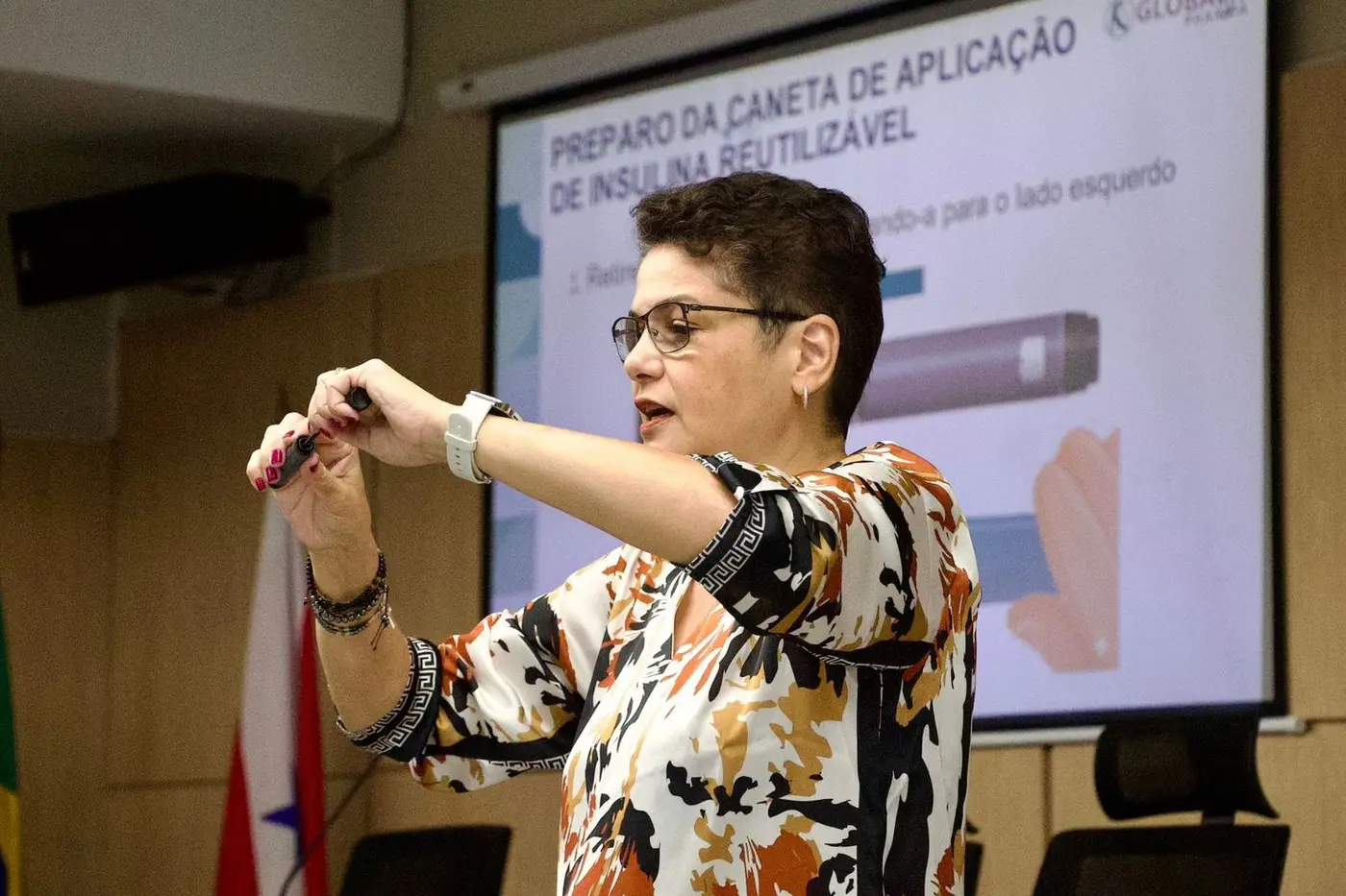 De uso mais fácil e seguro, o dispositivo reutilizável reduz erros de dosagem, já que os tubetes que trazem a insulina já vêm com as devidas marcações de quantidade, o que evita o desperdício do medicamento, oferecendo, também, maior segurança e comodidade. "Após o primeiro uso, a validade do suporte material da caneta é de três anos, momento em que ela deverá ser substituída por uma nova", reforçou Mônica, ao final da fase teórica da capacitação, que foi seguida pela parte prática.