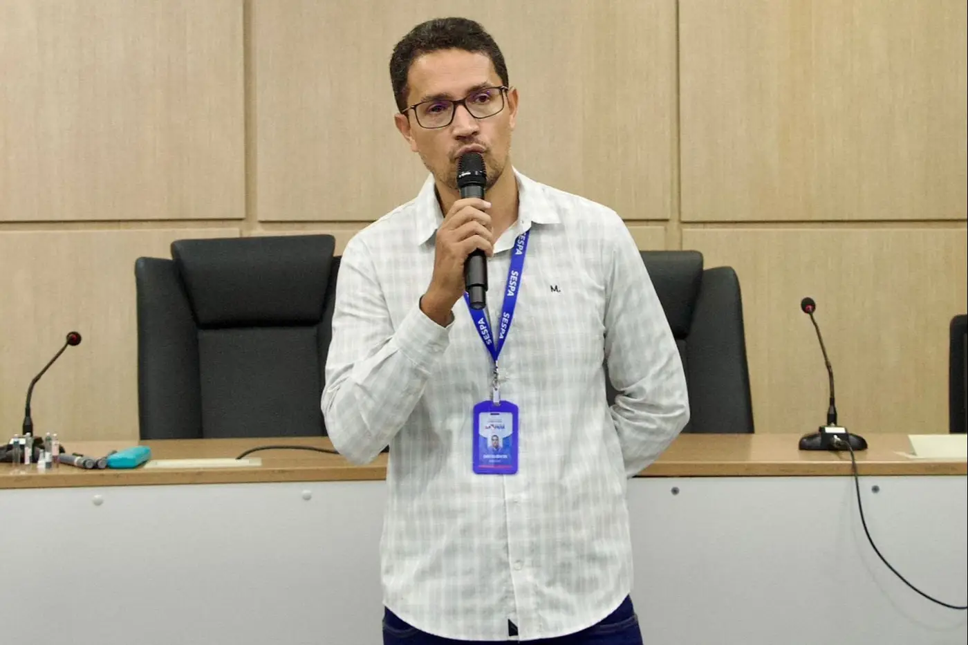 O secretário adjunto de Políticas Sociais da Sespa, Ivison Carvalho, fala à plateia da capacitação