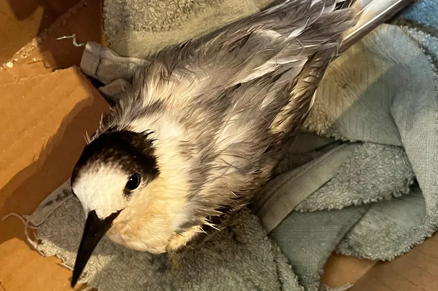 Trinta-réis-boreal chegou ao Mangal debilitada, recebeu tratamento e está apta a retornar à natureza