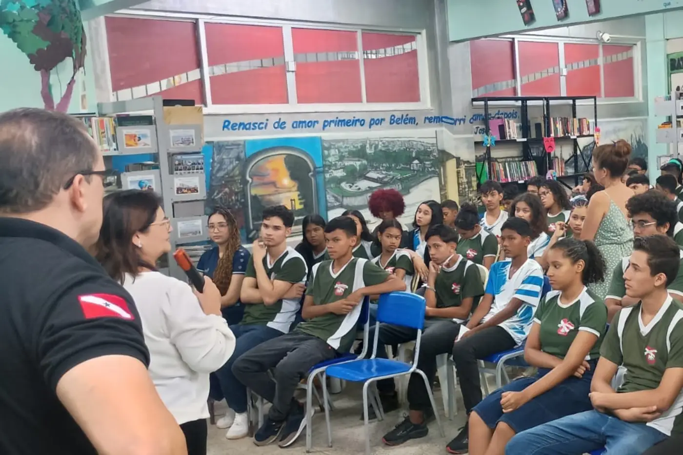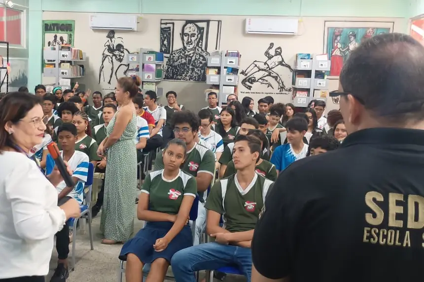 Estudantes do Ensino Médio da Escola Estadual Raymundo Martins Vianna, na Região Metropolitana de Belém, participaram nesta sexta-feira (17) de uma ação educativa voltada ao combate à violência e promoção da cultura de paz no ambiente escolar. A atividade abordou temas relevantes para o cotidiano escolar, como violência, bullying, cyberbullying, influência de torcidas organizadas e uso de drogas. A iniciativa proporcionou momentos de reflexão, diálogo e conscientização, incentivando atitudes de respeito e convivência pacífica.
