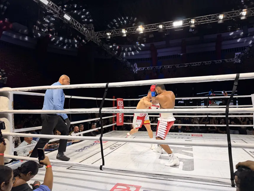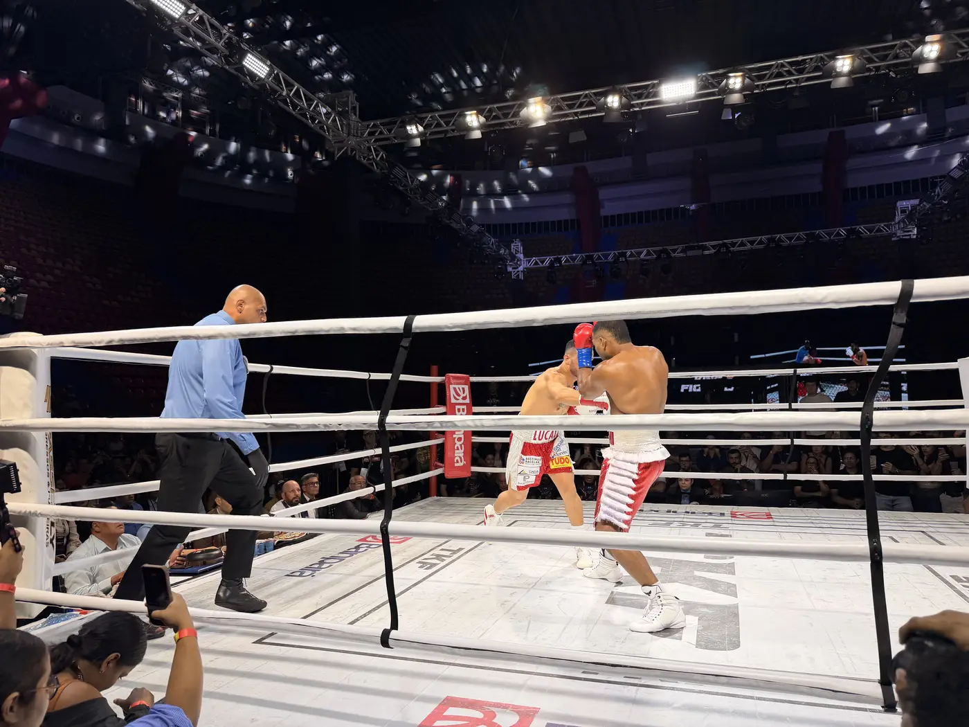 A luta principal começou intensa, com trocas de golpes e pressão de ambos os atletas. Ainda no primeiro round, Lucas Pereira encontrou o momento decisivo e venceu por nocaute, garantindo os cinturões e levando o ginásio ao auge da emoção.