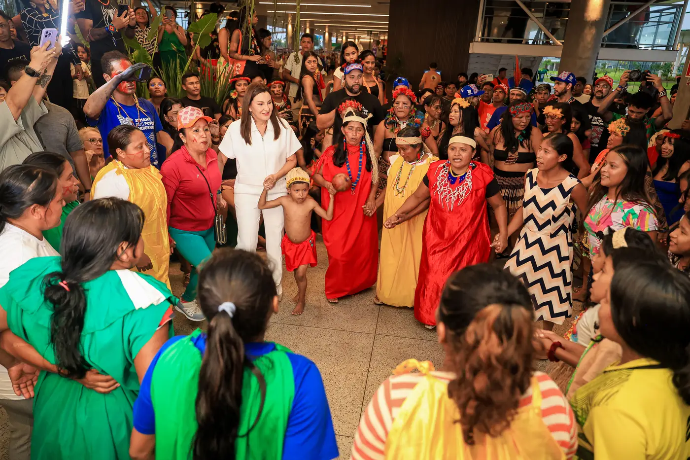 Ao longo do último dia de programação, o público acompanhou apresentações culturais de diferentes povos indígenas, com danças, cânticos e expressões tradicionais que marcaram o encerramento da semana. A governadora Hana foi recebida de forma calorosa pelas mulheres indígenas, participou de danças e cânticos e, ao final, recebeu presentes de artesanato de diferentes povos, como Tembé e Kaxuyana.