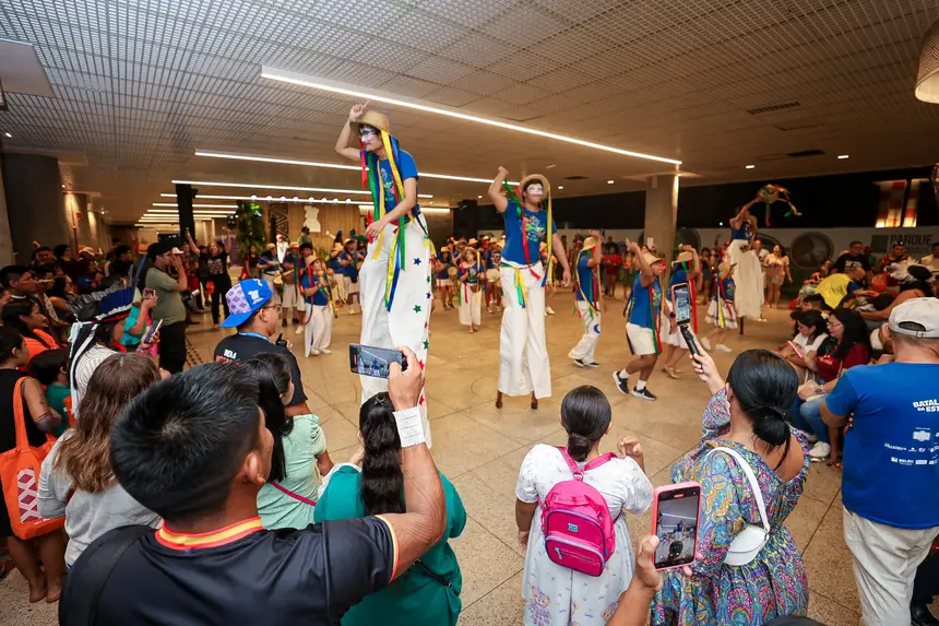 O encerramento foi marcado com o “Cortejo pela Ancestralidade Viva”, conduzido pelo Arraial do Pavulagem, que reuniu o público em um momento simbólico de celebração das culturas originárias. Após o cortejo, o grupo seguiu com apresentação no palco principal, animando o público com referências da cultura popular amazônica. A programação contou ainda com a participação do cantor Cássio Costa, ampliando o caráter festivo do último dia.