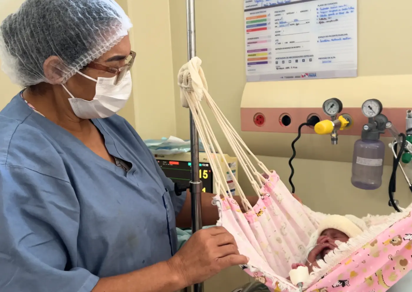 No Hospital Regional da Transamazônica, cochilo na rede virou terapia para bebês prematuros internados na UTI