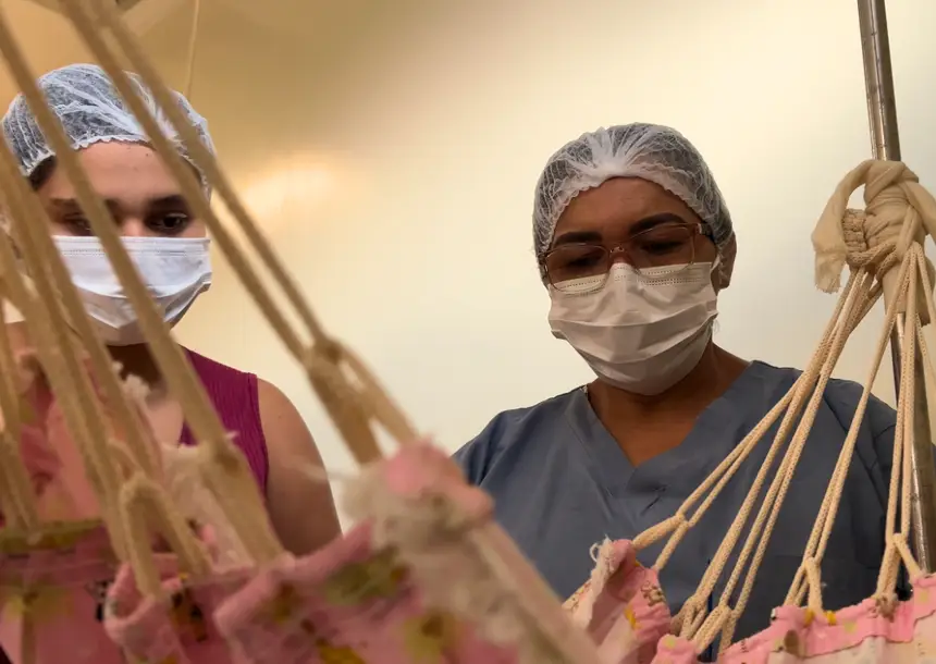Rede de sentimentos - A tradição de dormir ou mesmo tirar um pequeno cochilo em rede é uma prática marcante na identidade paraense. O HRPT levou essa experiência para dentro da área dedicada ao cuidado de crianças que nascem antes do tempo e necessitam de atenção especial. O procedimento deu certo imediatamente e garantiu elogios de mães, como Bianca Consoli. “Está sendo bom e a sensação de logo ir para casa é maravilhosa. Quando a gente for para casa vai ter uma redinha esperando” para a filha.
