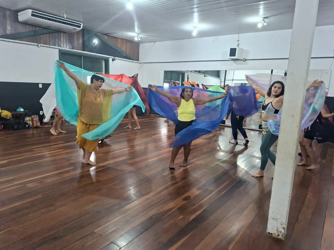 A oficina de Iniciação Teatral, conduzida pela instrutora Ingrid Gomes, ampliou sua capacidade para atender 30 inscritos, devido à alta demanda. Na oficina de Dança do Ventre, a instrutora Anicee D’Carmo trabalha a fusão da técnica com ritmos regionais, como o lundu. Já a turma de Danças Urbanas, ministrada pela instrutora Rafinha Brito, se destaca pela participação de jovens do Abrigo Calabriano, espaço de acolhimento próximo ao Curro Velho.