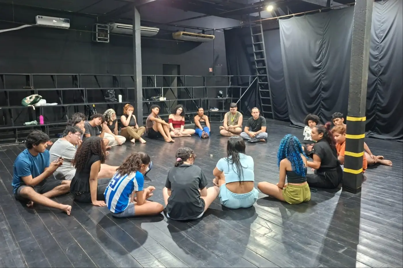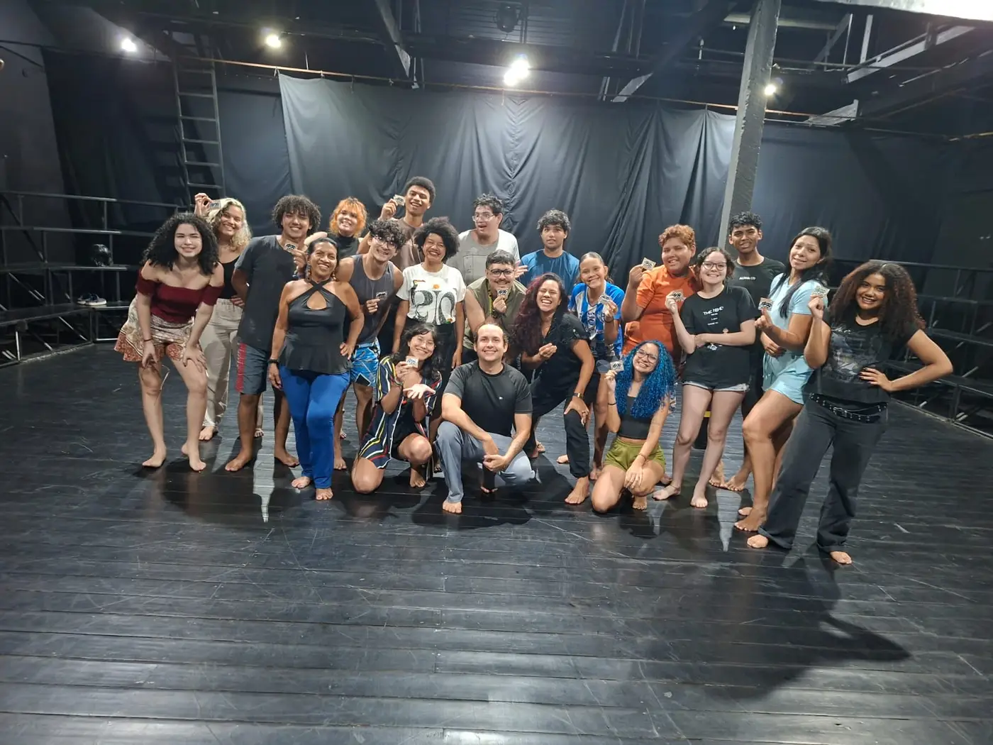 As formações em linguagens cênicas reúnem participantes de diversos bairros e incluem parceria com espaços de acolhimento social