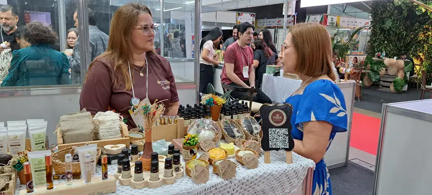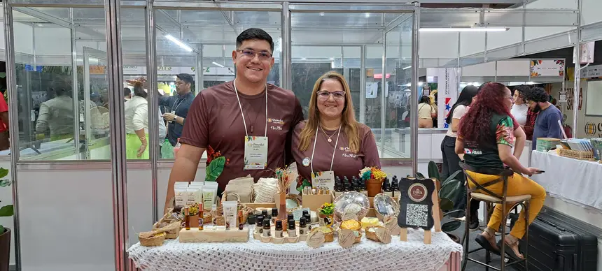 A presença do Governo do Estado no evento também aproxima os empreendedores das políticas públicas disponíveis. É o caso da agricultora familiar Odineia Silva, de 53 anos, do município de São Domingos do Capim, que participa como expositora com a marca Tawa Artesanal, de cosméticos produzidos com insumos da floresta amazônica.