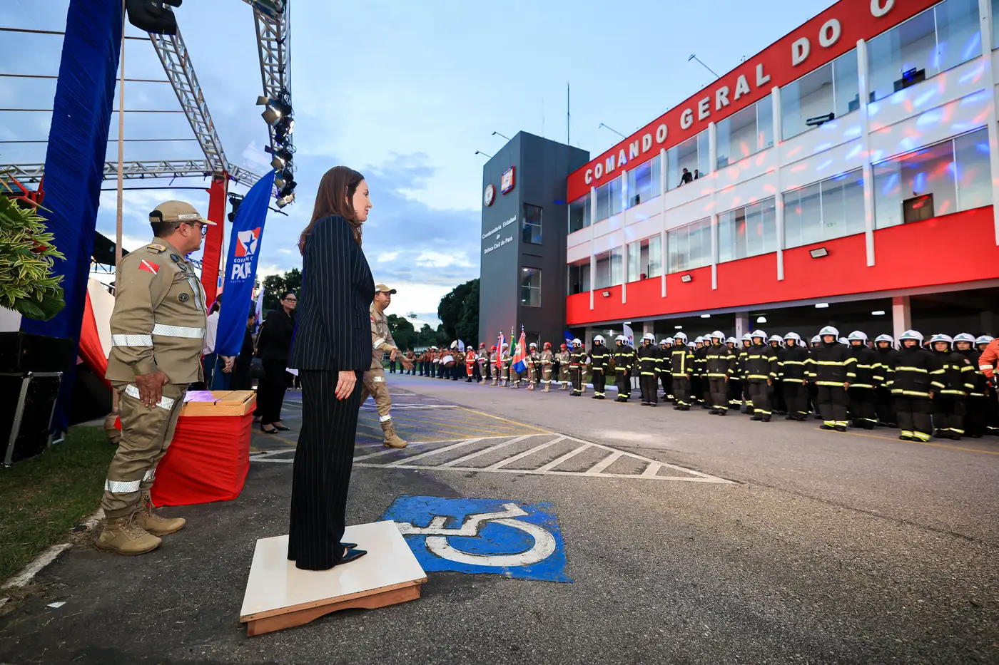 Durante a cerimônia, a governadora destacou os investimentos do Executivo estadual na área da segurança pública, com foco na ampliação do efetivo e na aquisição de equipamentos. Ela citou o anúncio recente do cronograma de convocação de 744 candidatos aprovados em concurso público, que devem reforçar o CBMPA.