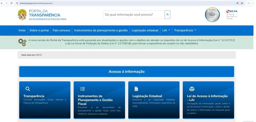 Lançado em 2023, o novo Portal Transparência consolidou um marco importante no fortalecimento da gestão pública estadual, reunindo informações públicas alinhadas às diretrizes e critérios estabelecidos Programa Nacional de Transparência Pública (PNTP), além de garantir a melhoria da usabilidade e acessibilidade aos dados públicos relacionados às ações e programas dos órgãos e entidades estaduais.