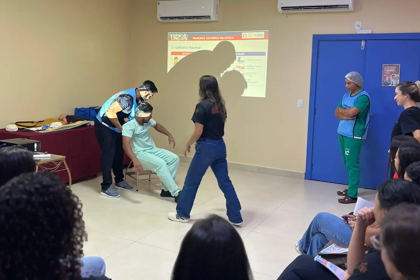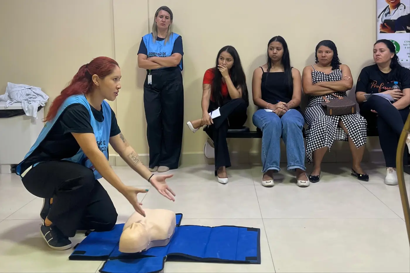 Nesta etapa, a ação contou com a participação de 18 colaboradores das escolas Cantinho ABC e Vida e Saber, que mergulharam em condutas práticas sobre como agir em casos de engasgo, quedas e outras situações de urgência que podem ocorrer no cotidiano infantil.