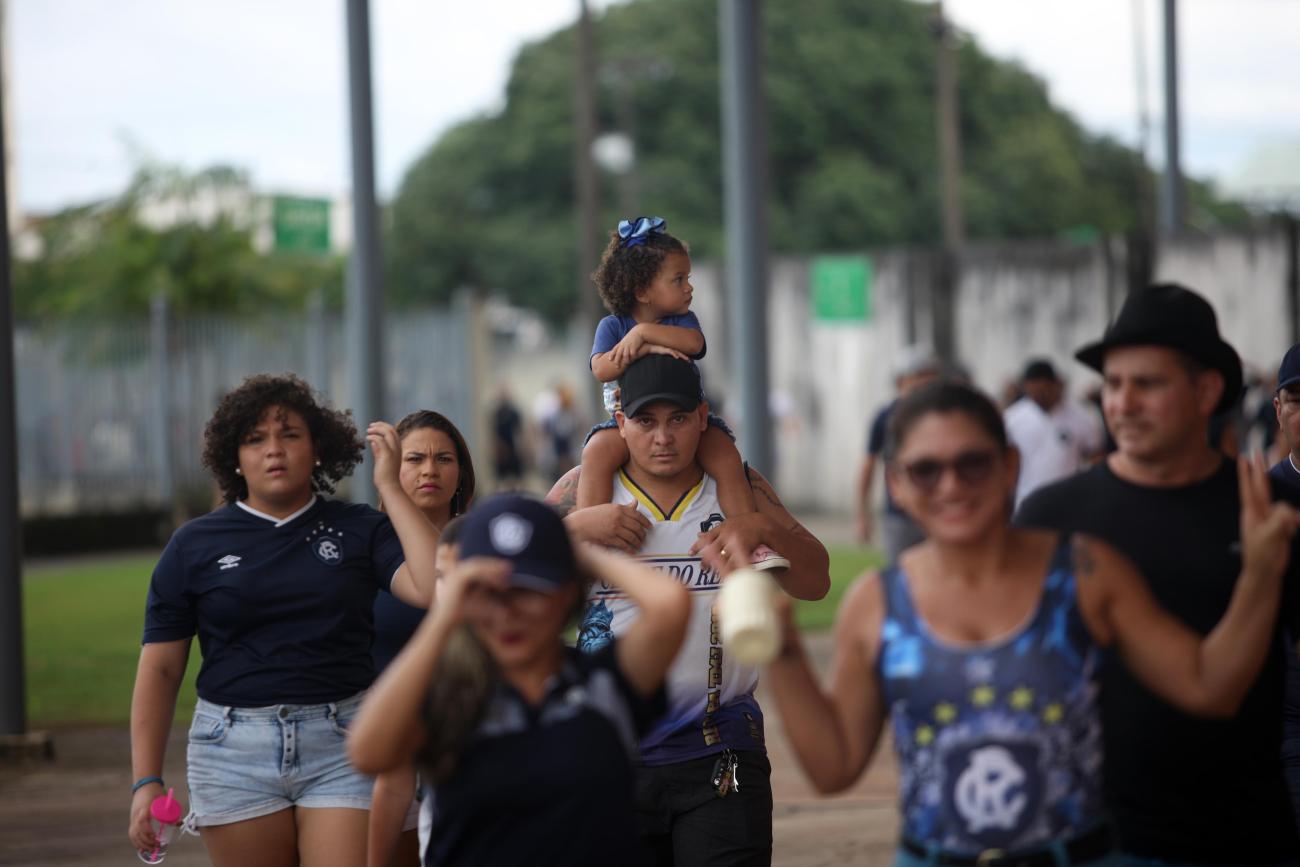 O professor Osmar Júnior (foto), de 43 anos, levou o sobrinho Yuji Nepomuceno, de 11, para ver o time azulino em ação. "A gente veio tranquilo, não pegou tumulto nem aqui nem no trânsito. Ele até ponderou comigo se era uma boa virmos, mas tranquilizei ele, reforçando que os órgãos competentes liberaram o Mangueirão, e por isso a gente veio!", contou o torcedor, enquanto se encaminhava para a arquibancada.