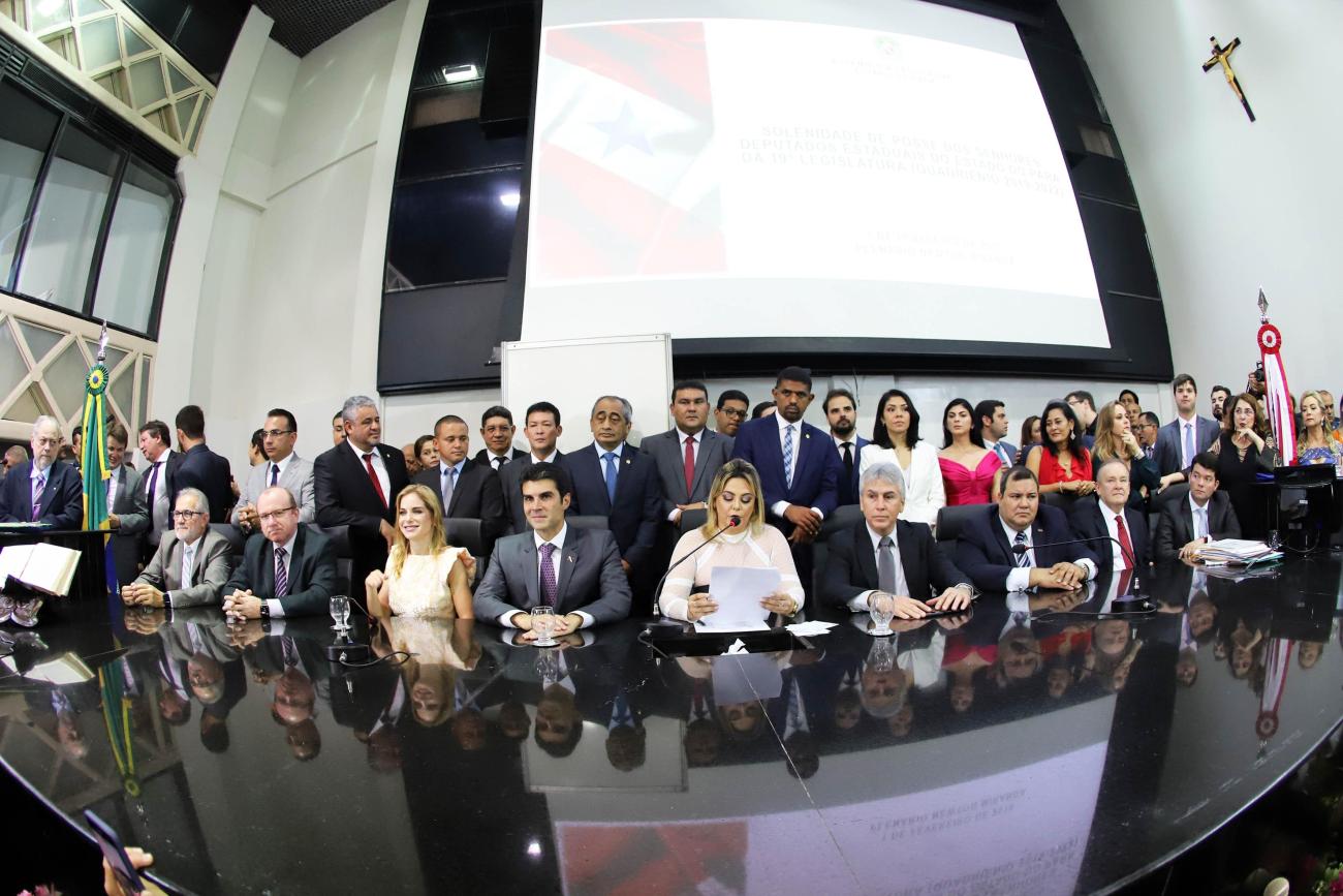 O governador Helder Barbalho prestigiou, na manhã desta sexta-feira (1°), a posse dos novos deputados estaduais do Pará, no plenário Newton Miranda, da Assembleia Legislativa do Estado (Alepa). Na ocasião, os parlamentares também elegeram a nova Mesa Diretora da Casa para um mandato de dois anos. O presidente será o deputado Daniel Barbosa Santos, mais conhecido como Dr. Daniel, sem partido no momento. A cerimônia foi conduzida pela deputada Cilene Couto, tendo como secretários os deputados Martinho Carmona e Miro Sanova.