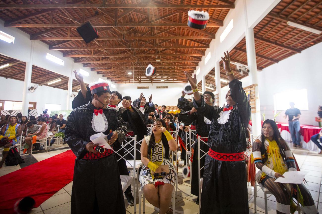 Cerimônia de outorga de grau aos 15 indígenas integrantes da primeira turma do povo Kayapo do curso de licenciatura intercultural indígena da Uepa, na manhã desta quinta-feira, 06, em São Félix do Xingu.