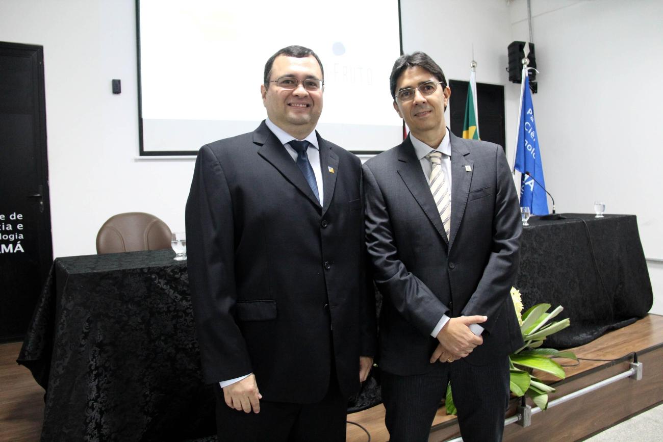 A Fundação de Ciência e Tecnologia Guamá, organização social responsável pela gestão do Parque de Ciência e Tecnologia Guamá, realizou na quinta-feira (17), a cerimônia de posse de sua nova diretoria executiva, eleita pelo conselho curador da instituição para o triênio 2019/2021. O evento foi realizado no auditório do prédio "Espaço Inovação", em Belém. Mais de 100 pessoas, entre autoridades do governo, da comunidade acadêmica e representantes do ecossistema de inovação do estado do Pará participaram do evento. Na foto, O presidente eleito, Rodrigo Quites Reis e Antônio Abelém presidente entre 2010 a 2018.