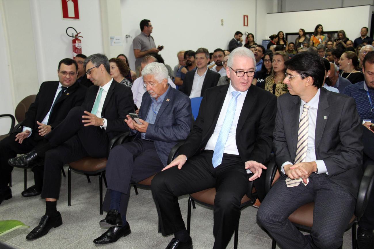 A Fundação de Ciência e Tecnologia Guamá, organização social responsável pela gestão do Parque de Ciência e Tecnologia Guamá, realizou na quinta-feira (17), a cerimônia de posse de sua nova diretoria executiva, eleita pelo conselho curador da instituição para o triênio 2019/2021. O evento foi realizado no auditório do prédio "Espaço Inovação", em Belém. Mais de 100 pessoas, entre autoridades do governo, da comunidade acadêmica e representantes do ecossistema de inovação do estado do Pará participaram do evento.Na foto,  Alessandra Gomes, do Inpe, Rodrigo Quites Reis, Arnaldo José de Miranda e Ana Albernaz, diretora do Museu Paraense Emilio Goeldi.
