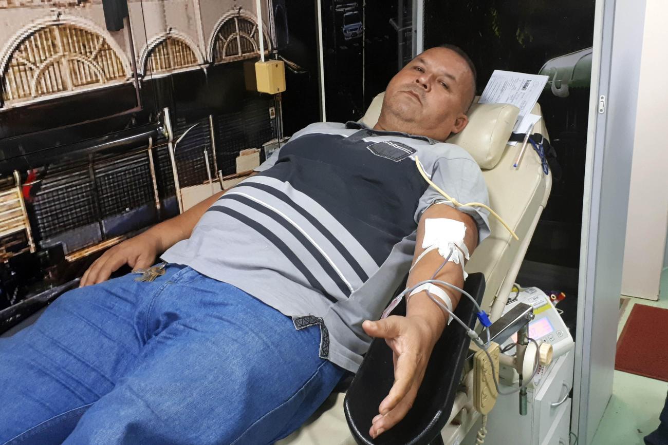 Em comemoração aos 50 anos da “Estação Radiogoniométrica da Marinha em Belém”, completados no dia 8 de janeiro, a Marinha do Brasil realiza campanha de estímulo à doação de sangue na Fundação Centro de Hemoterapia e Hematologia do Pará (Hemopa). A ação solidária tem como tema “ARMBe – 50 anos, 50 litros”, tendo como meta a doação de 50 litros de sangue. Na foto, o vigilante Roberto Afonso de Souza.