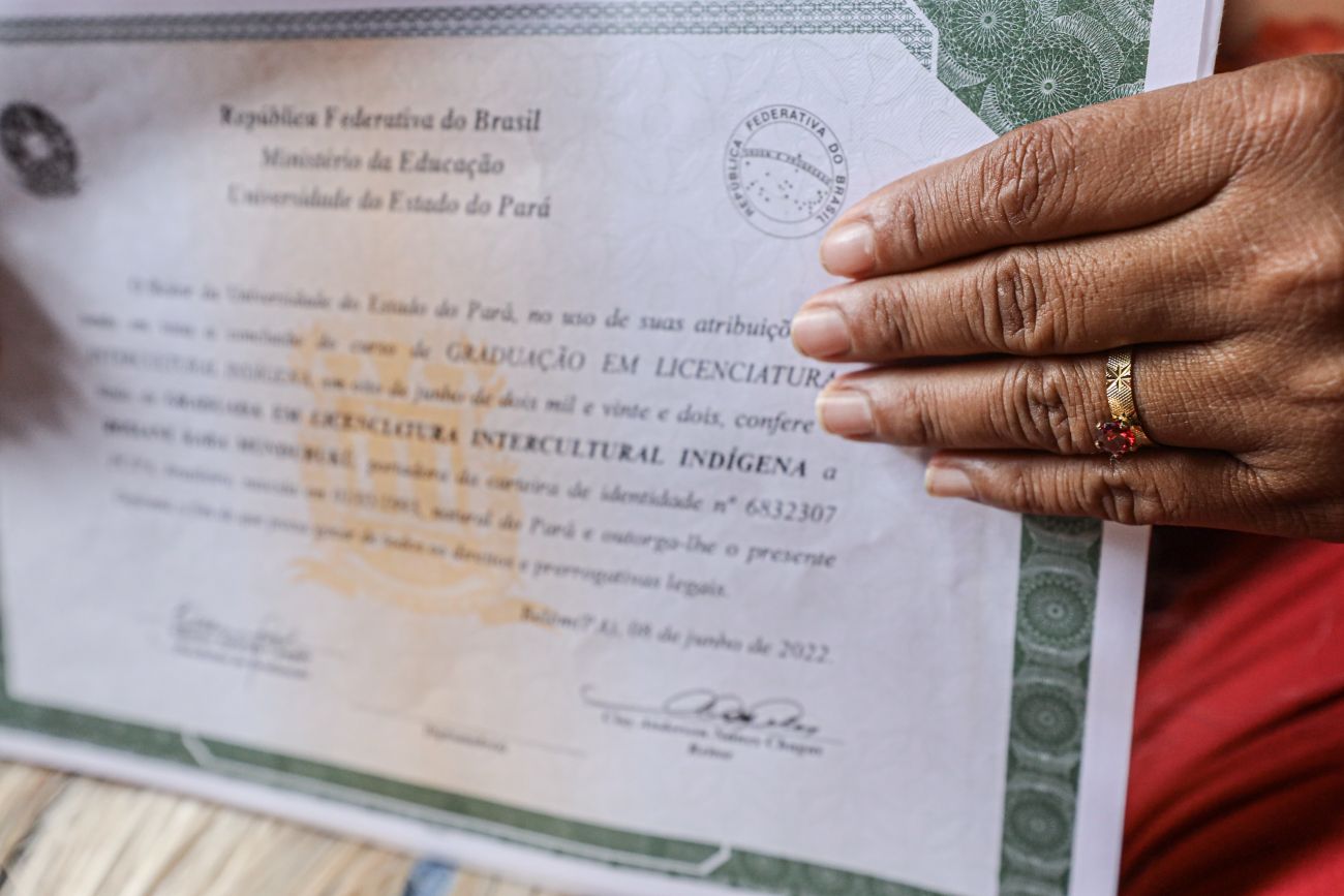ROSEANE KABA MUNDURUKU LICENCIATURA INTERCULTURAL INDÍGENAS JACAREACANGA - Rodrigo Pinheiro AgPará <div class='credito_fotos'>Foto: Rodrigo Pinheiro / Ag.Pará   |   <a href='/midias/2022/originais/14559_fa9da65c-06d3-0532-8ee6-cc78cc1d94df.jpg' download><i class='fa-solid fa-download'></i> Download</a></div>
