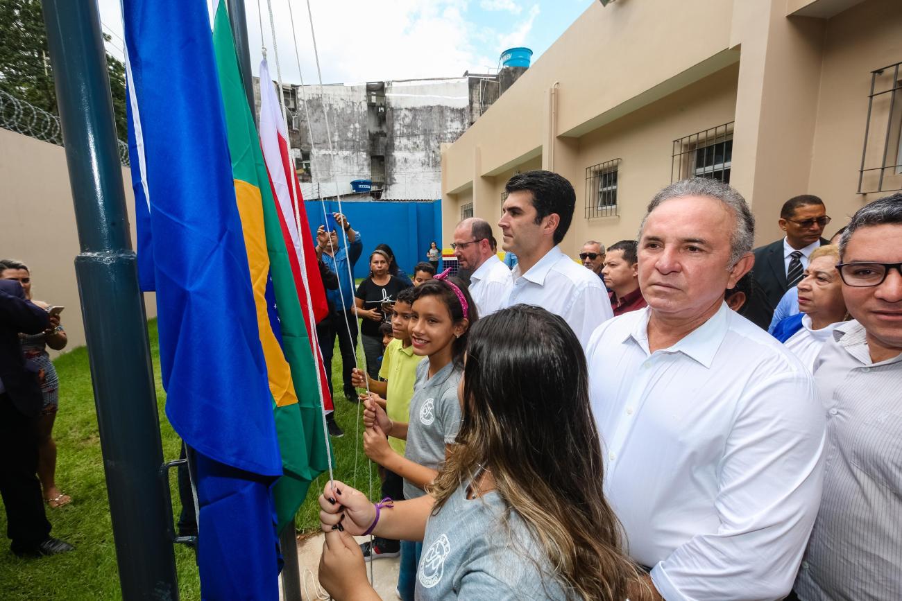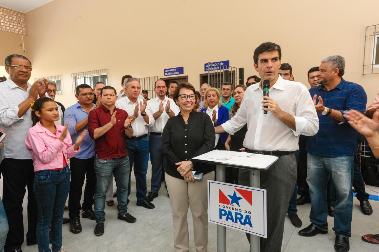 O Governo do Estado, por meio da Secretaria de Estado de Educação (Seduc), entregou mais uma escola totalmente reformada e ampliada para melhor comodidade de professores e alunos. Com mais de 1 mil alunos matriculados nos três turnos, a Escola Estadual de Ensino Fundamental e Médio Jarbas Passarinho, em Belém, iniciou o ano letivo com a entrega da obra de reforma e ampliação de todo o complexo da instituição. A reinauguração do espaço aconteceu na manhã de hoje, 21, com a presença do governador Helder Barbalho, do vice-governador Lúcio Vale, da secretária de educação, professora Leila Freire e de diversas autoridades.