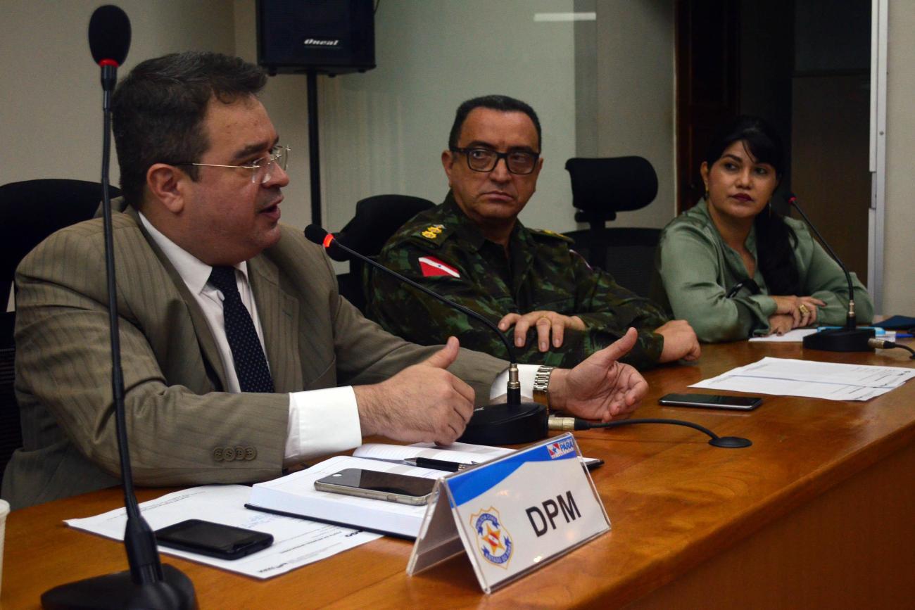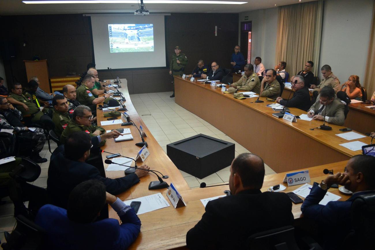 Para garantir a segurança e a tranquilidade dos torcedores do Remo e Paysandu, que jogam pelo Campeonato Paraense de Futebol (Parazão) no próximo domingo (17), foi estabelecido um esquema de ações em reunião nesta quarta-feira (13). As estratégias foram definidas entre a Secretaria de Estado de Segurança Pública e Defesa Social do Pará (Segup), órgãos da segurança estadual, municipal e Ministério Público do Estado (MPE). FOTO: ELIELSON MODESTO / ASCOM SEGUP DATA: 13.02.2019 BELÉM - PARÁ