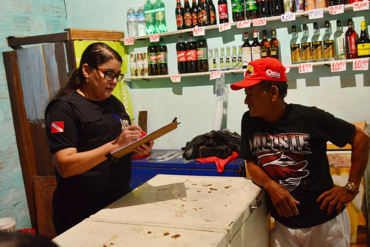 Com objetivo de coibir irregularidades e prevenir crimes e a violência durante o período do carnaval foi deflagrada, nesta terça-feira (5), no distrito de Outeiro, em Belém, a operação Pacificação, que consiste na vistoria de estabelecimentos que desempenham atividade comercial, como bares, lanchonetes, restaurantes, depósitos de bebidas, entre outros. Durante a fiscalização 11 bares foram autuados. Na foto Jivago Ferreira FOTO: ASCOM / ELIELSON MODESRO DATA: 06.03.2019 OUTEIRO - PA