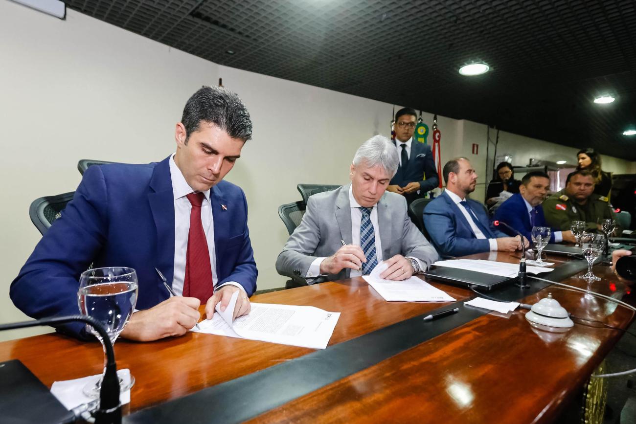 O governador Helder Barbalho e o procurador-geral de Justiça do Pará, Gilberto Martins, assinaram, no final da manhã desta segunda-feira (18), na sede do Ministério Público do Estado (MPE), um convênio que formaliza a reconvocação de 50 policiais militares da reserva para as atividades de proteção do patrimônio e segurança do MPE, enquanto os 50 policiais militares da ativa que exerciam essas funções serão devolvidos à atividade-fim da Polícia Militar, que é o policiamento ostensivo. Acordo semelhante também já havia sido firmado em fevereiro, com o Tribunal de Justiça do Estado (TJE).