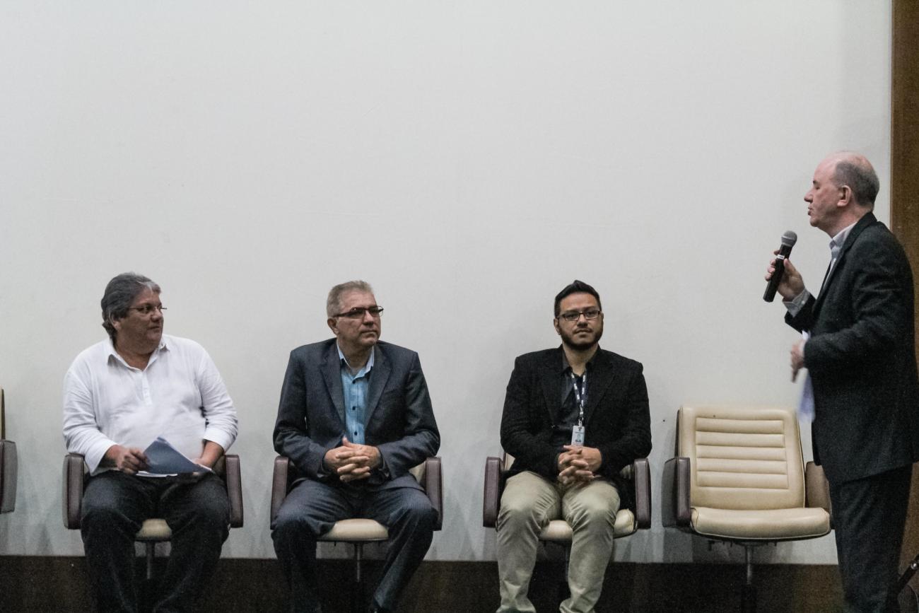 da esquerda para direita- secretário adjunto do Tesouro, Lourival Barbalho; diretor da Daif, lamartine Carvalho; diretor da DTI, Gilvã Ribeiro e René Sousa Junior, secretário da Fazenda ( em pé)
