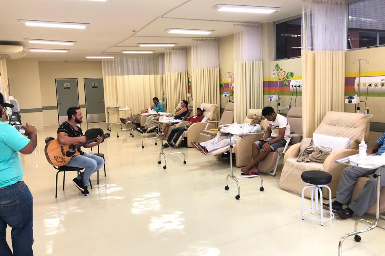 A musicoterapia é destaque dentro da programação do Março Lilás, campanha de combate ao câncer uterino, na Unidade de Alta Complexidade em Oncologia Dr. Vítor Moutinho (Unacon), em Tucuruí, no sudeste paraense. A terapia é oferecida por meio de parcerias, entre elas, do cantor Igor Nemo, que levou  alegria e descontração aos pacientes atendidos na unidade.