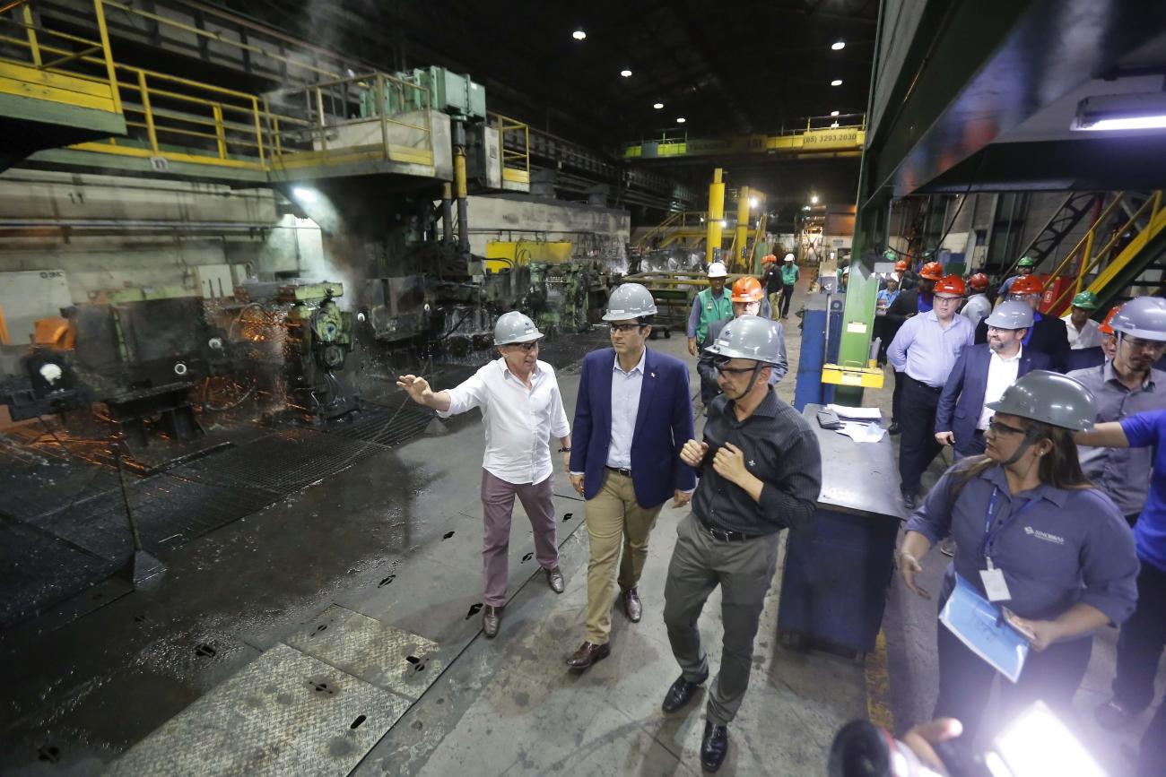 A revitalização do Distrito Industrial de Marabá e o apoio às empresas locais e às que desejam se instalar na região foi a tônica do discurso do governador Helder Barbalho em visita realizada às instalações da empresa Sinobras, na noite da quinta-feira (4), em Marabá. Aproveitando um intervalo entre as reuniões com dirigentes locais, ele fez uma pausa para a visita e ouviu empresários da Associação Comercial de Marabá.