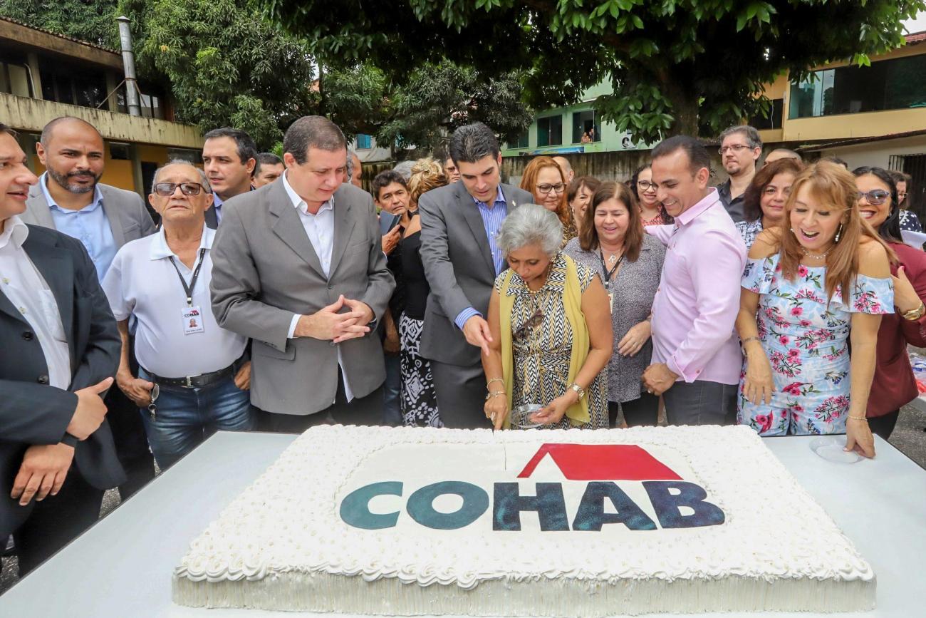 Na manhã desta terça-feira (16), o governador Helder Barbalho esteve na sede da Companhia de Habitação do Pará (Cohab), para participar, junto com o presidente do órgão, José Scaff Filho, das comemorações pelos 54 anos da instituição. Durante a programação foram entregues 54 cheques moradia e realizada a assinatura simbólica de 200 títulos de regularização fundiária.