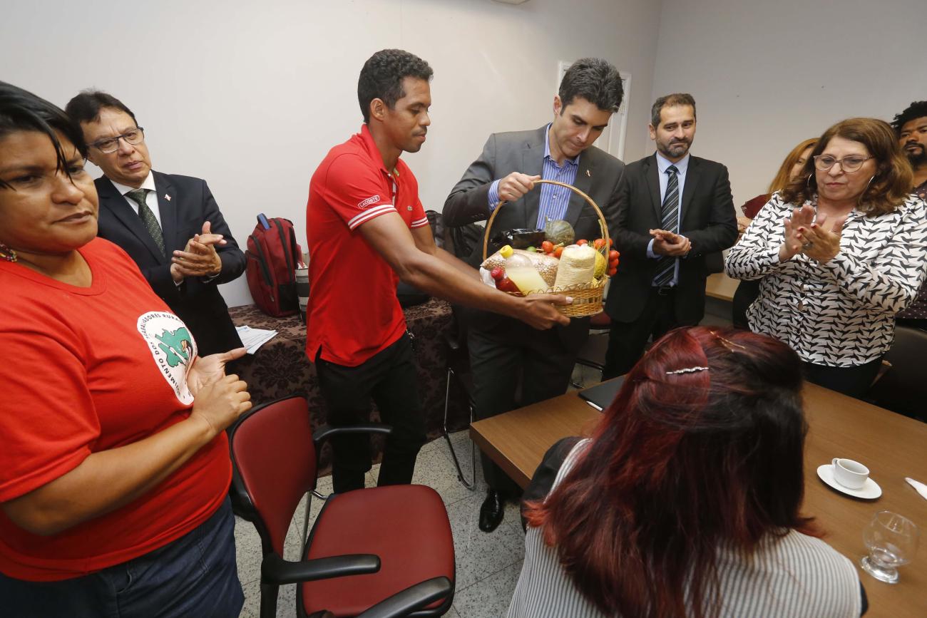 O chefe do Executivo Estadual recebeu, no início da noite desta terça-feira (16), no Palácio do Governo, em Belém, representantes do Movimento dos Trabalhadores Rurais Sem Terra (MST), acompanhado por secretários e representantes de diversos órgãos do Estado envolvidos com as questões agrárias, e determinou imediatamente a criação do grupo.