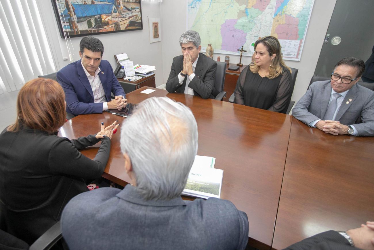 Na manhã desta quinta-feira (25), no Palácio do Governo, em Belém, o governador Helder Barbalho se reuniu com a presidente do Instituto Dialog, Liane Freire, o diretor presidente da Biotec Amazônia, José Seixas Lourenço, e com titulares e representantes das secretarias estaduais de Educação (Seduc), de Desenvolvimento (Sedeme), de Ciência e Tecnologia (Sectet) e do Banco do Estado do Pará (Banpará), quando tratou de investimentos em novas economias e o interesse em projetos que beneficiem o Pará, e a Amazônia de modo geral, a partir de duas diretrizes: “bioeconomio”, a economia da floresta, e infraestruturas sustentáveis.