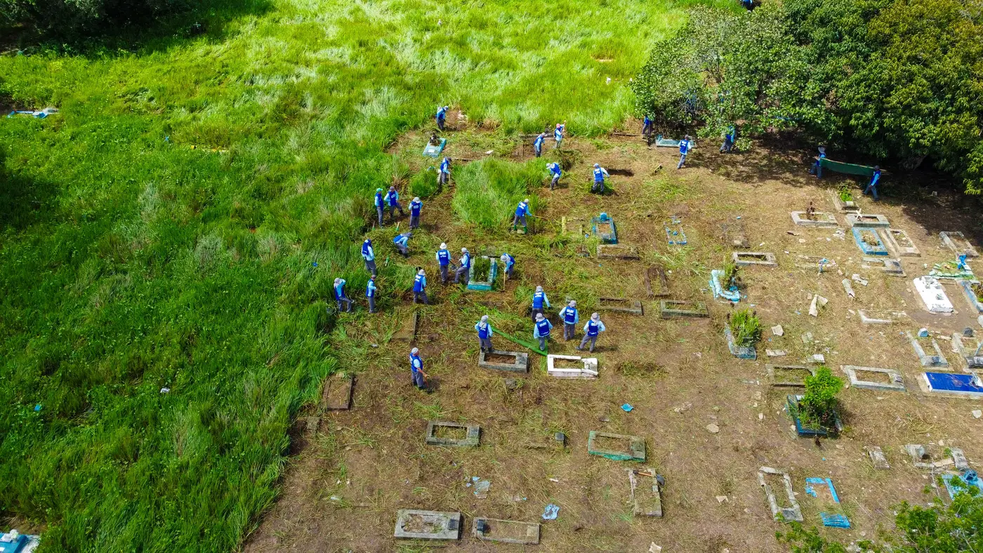 Custodiados da Seap realizam ação de limpeza no cemitério do Tapanã