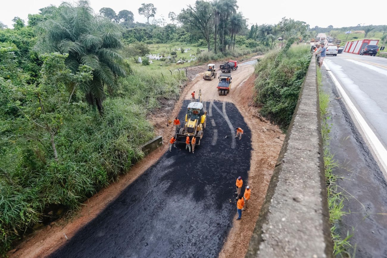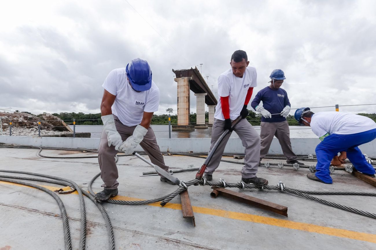 Duas equipes de mergulhadores iniciaram o trabalho de amarração dos destroços da ponte Rio Moju nesta terça-feira (30). Eles farão a amarração de 24 cabos de aço aos escombros da balsa e da estrutura que desabou para que, assim, seja feita a movimentação do tabuleiro, que mede de 80 metros e pesa 850 toneladas. Toda a ação é acompanhada pela Secretaria de Estado de Transportes (Setran).