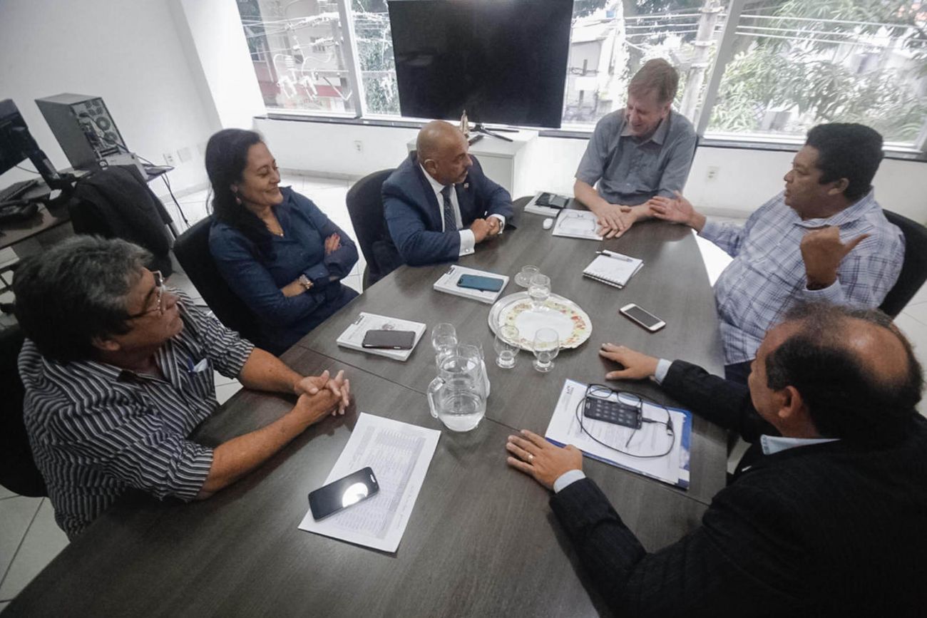 O secretário Extraordinário de Estado para Assuntos Penitenciários, Jarbas Vasconcelos, esteve presente para reunião na Secretaria de Estado de Assistência Social, Trabalho, Emprego e Renda (Seaster), na manhã desta quinta-feira (02), para um reunião com o secretário Inocêncio Gasparim. Na ocasião foram apresentados os projetos da nova gestão e discutidas ações de reinserção social com detentos.