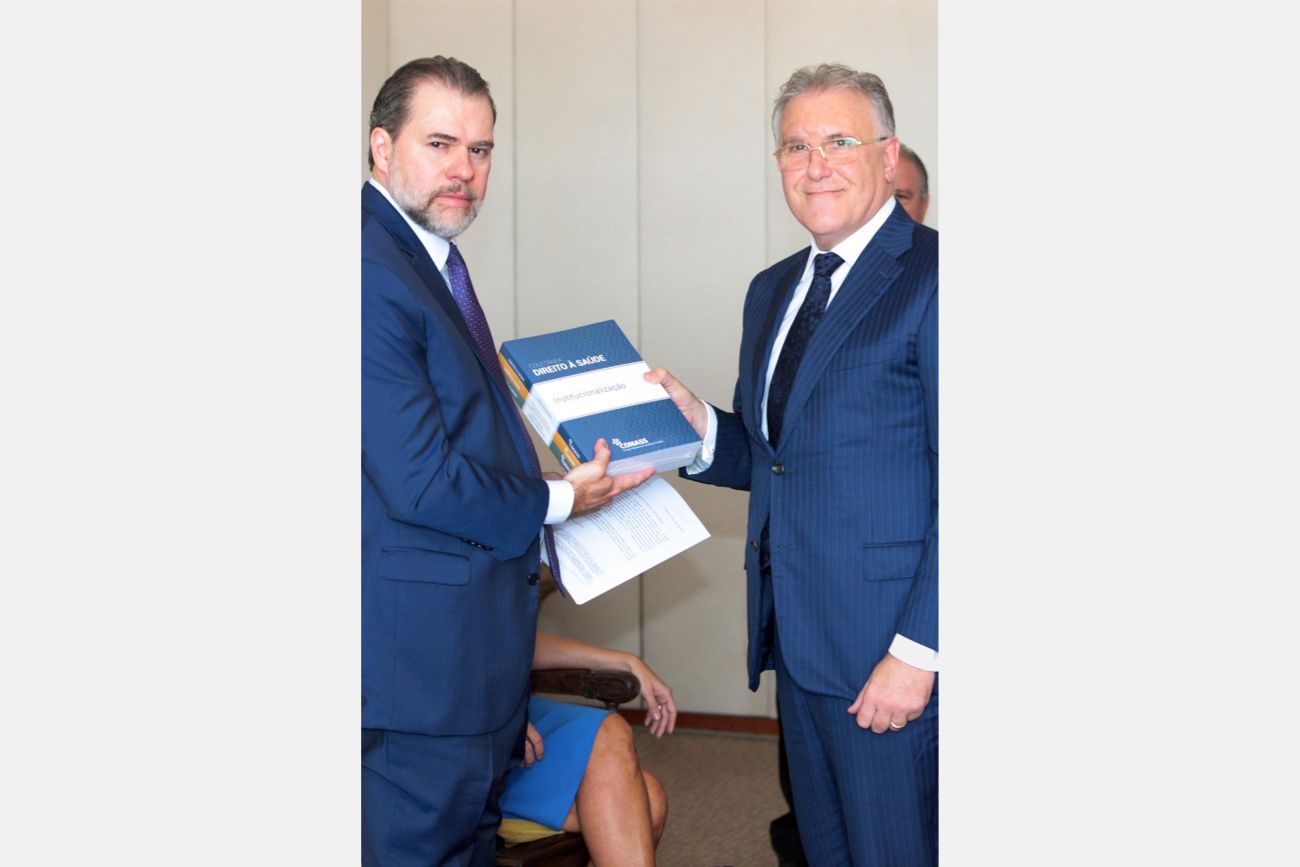 O secretário de Estado da Saúde do Pará e presidente do Conselho Nacional de Secretários de Saúde (Conass), Alberto Beltrame, entregou, nesta quinta-feira (11), ao presidente do Supremo Tribunal Federal, ministro Dias Toffoli, documento com o posicionamento dos gestores estaduais de saúde acerca do julgamento de Recursos Extraordinários referentes a medicamentos de alto custo, solidariedade entre os entes, e medicamentos sem registro na Anvisa. Também estava na pauta a proposta de súmula vinculante (conjunto de decisões de um Tribunal Superior relativas a casos que tratam de temas parecidos e que são julgados de maneira semelhante), relativa ao bloqueio judicial de valores.