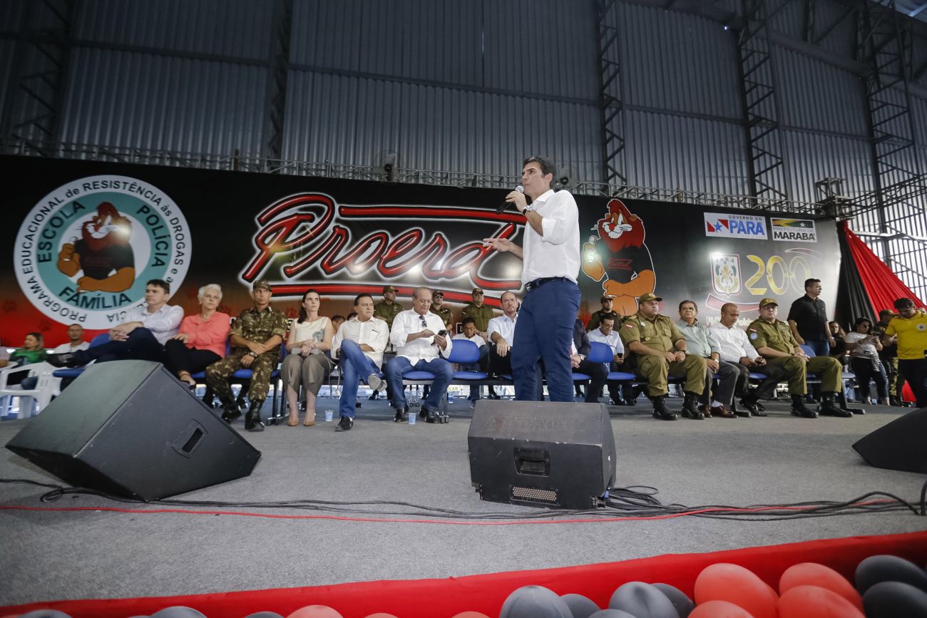Cerca de 3.500 estudantes, de 13 escolas da rede pública da sede municipal de Marabá e dos distritos de Morada Nova e São Félix, no sudeste paraense, participaram nesta quarta-feira (19) da cerimônia de conclusão de cursos do Programa Educacional de Resistência às Drogas e à Violência (Proerd). Realizado no Centro de Convenções da Assembleia de Deus, a partir das 16 h, o evento encerrou um ciclo de quatro meses de formação, e contou com a participação do governador Helder Barbalho e do vice-governador Lúcio Vale.
