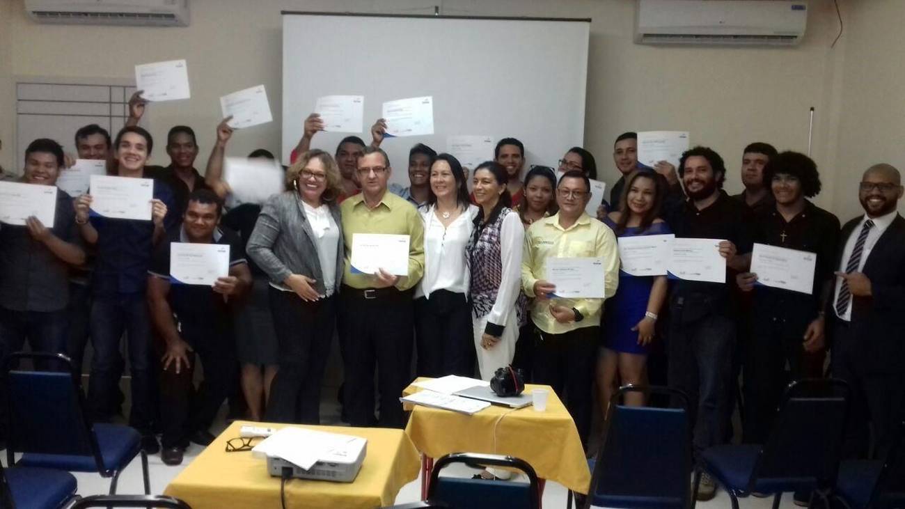 Estão abertas, até o dia 23 de fevereiro, as inscrições para o preenchimento de 465 vagas, distribuídas em 21 cursos, oferecidas por meio do Programa Pará Profissional. As aulas ocorrerão em 13 municípios, localizados em oito diferentes regiões de integração do Estado. Os cursos são presenciais, de caráter teórico-prático. Eles são dirigidos para apoiar atividades do Comércio de Bens, Serviços e Turismo nos municípios. O início das aulas ocorre entre os meses de fevereiro e abril, dependendo do curso escolhido. Para estarem aptos à matrícula, os participantes devem ter idade mínima de 18 anos completos no momento da inscrição e atender aos níveis de escolaridade e pré-requisitos exigidos no anexo I do edital. Na foto, no dia 6 de fevereiro, 41 concluintes dos cursos de assistente de logística e vendedor receberam os certificados do Pará Profissional na Associação Comercial de Ananindeua. Para a realização desses cursos, a Sectet contou com a parceria da Associação Empresarial de Ananindeua e da Prefeitura Municipal.
