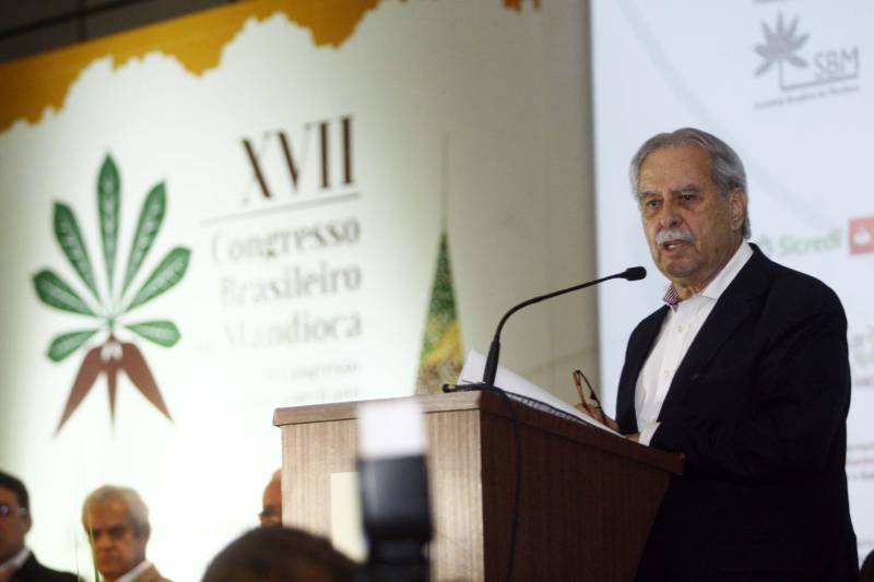Autoridades, cientistas, empresários e produtores rurais participaram, na noite desta segunda-feira (12), no Hangar Convenções e Feiras da Amazônia, da abertura do XVII Congresso Brasileiro de Mandioca e do II Congresso Latino-Americano e Caribenho de Mandioca, os dois mais importantes eventos voltados à mandiocultura no Brasil e no continente, que ocorrem pela primeira vez no Pará. Na foto, o presidente da Assembleia Legislativa, Márcio Miranda, um dos homenageados.
