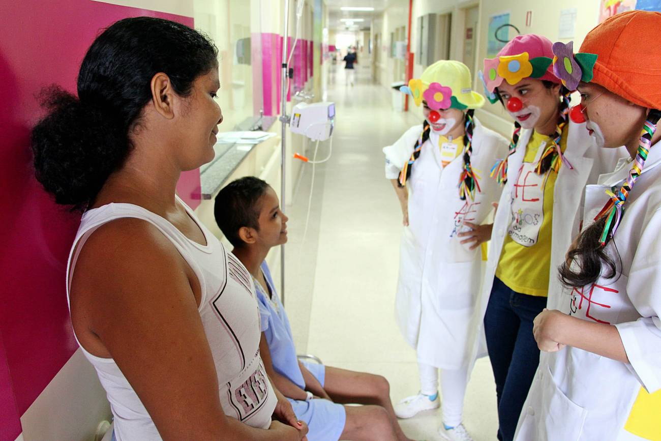 A filha de Maria Domingas Paixão machucou o joelho após uma queda enquanto brincava. A mãe imaginava que como qualquer outro hematoma decorrente da diversão dos adolescentes, o inchaço no joelho diminuísse rápido. Com o passar dos dias, vendo a filha se queixar cada vez mais de dores, Maria percebeu que precisava de ajuda. “Fizemos os primeiros exames em Limoeiro do Ajuru. Fomos encaminhadas para Belém e dias depois estávamos aqui no Oncológico. Esses seis meses de tratamento têm sido ótimos. Hoje mesmo ela se divertiu com as enfermeiras que estavam aqui”, contou Maria Domingas sobre o encontro da filha com as voluntárias do grupo 'Anjos da Enfermagem'. As voluntárias atuam no suporte aos pacientes acolhidos pelo Hospital Oncológico Infantil Octávio Lobo (foto), em Belém (PA). Observadora como Maria Domingas, Midene Batista percebeu algo errado com a filha de seis anos e procurou ajuda. “Fui dar um banho nela e percebi algo diferente na região do abdômen. Tive medo, porque é minha única filha, mas hoje ela é primeira a me dizer que está tudo bem”, contou a mãe, que saiu do município do Acará, no nordeste paraense, e há três anos acompanha a filha em tratamento contra o tumor de Wilms, um tipo de câncer renal que acomete frequentemente crianças.