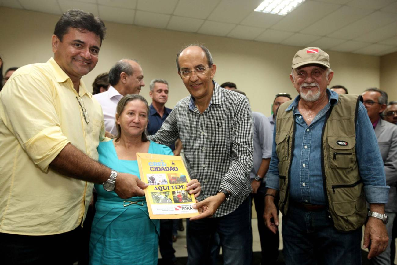Dona Neli da Silva Lopes (vestido azul), de 59 anos, estava ainda mais sorridente nesta sexta-feira, no Centro de Convenções de Marabá. Tanta alegria tinha um motivo todo especial, a vendedora de açaí do bairro Liberdade, em Marabá, ela recebeu das mãos do Governador Simão Jatene, o cheque do microcrédito do Programa Cred Cidadão. “Nosso lucro é pouco, não dava para ampliar nosso pontinho, com esse dinheiro, quero comprar freezer para fazer sorvete de açaí. Eu fiquei muito feliz, se a gente pagar direitinho, depois já posso tentar outro credito, com certeza vou melhorar minha venda. Esse governador maravilhoso trouxe isso para nós, que Deus abençoe a saúde dele para que possa olhar mais para os necessitados”, enfatizou. Outro que vai ampliar a venda de açaí, só que dessa vez na Zona Rural de Marabá, na Vila Sororó, é seu Valdenor Borges de Oliveira, de 49 anos, com o microcrédito ele pretende comprar um freezer e mais açaí. "Fiquei muito satisfeito. Trabalho há 12 anos com açaí e nunca tinha tido uma oportunidade como essa”, destacou o vendedor.