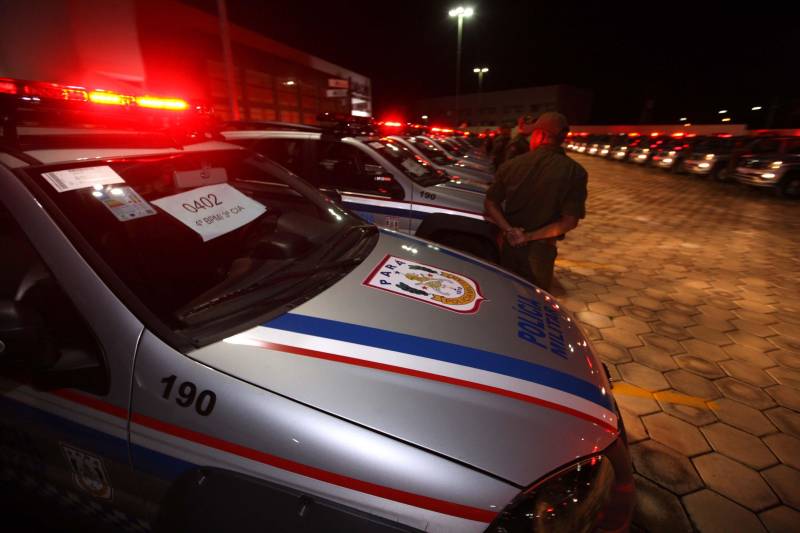 O Governador do Estado, Simão Jatene, também entregou para a região mais de 90 viaturas (foto) , 65 caminhonetes e 27 carros utilitários (pálios weekend), com destaque para duas da patrulha rural e uma para ronda escolar específica para Marabá. O Secretário de Estado de Segurança Pública, Luiz Fernandes, ressaltou que os veículos vão substituir a frota nas regiões sul e sudeste. “Surgiu uma demanda do policiamento rural, e já uma semana depois, por determinação do governador, já trouxemos as viaturas e já temos o policiamento disponível para fazer esse patrulhamento, que vai iniciar na região sudeste, mas se estenderá para a região sul e nordeste do estado. Hoje estamos substituindo toda a frota de veículos da região sul e sudeste, além disso o governador determinou onde tiver policiamento vai ter uma viatura, e já foi apresentado para a região os novos policiais que tomaram posse, nós não temos mais nenhum município sem delegado”, pontuou. Outras conquistas citada pelo Secretário da SEGUP foi o aumento do Núcleo de Apoio à Investigação e a criação de um conselho regional para acompanhar as ações de segurança pública. FOTO: SIDNEY OLIVEIRA / AG. PARÁ DATA: 06.04.2018 MARABÁ - PARÁ <div class='credito_fotos'>Foto: Sidney Oliveira/Ag. Pará   |   <a href='/midias/2018/originais/a2bacb18-9fae-476e-9ef0-6be84e54bb69.jpg' download><i class='fa-solid fa-download'></i> Download</a></div>
