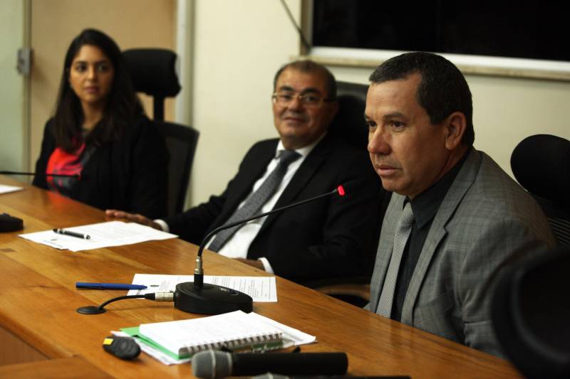 A comitiva nacional dos direitos humanos foi recebida por representantes da Secretaria de Estado de Segurança Pública e da Defesa Social (Segup) para dialogar sobre as medidas já colocadas em prática frente ao ocorrido no Centro de Recuperação Penitenciário do Pará III (CRPP III), na última terça-feira, 10. A reunião foi nesta sexta-feira, 13, na sede da secretaria. Na foto, o titular da Segup, Luiz Fernandes.