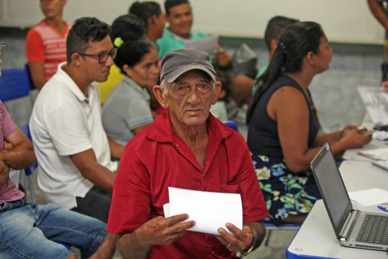“Perdi todos os documentos na chuva, assim como quase tudo de dentro da casa. Poder tirar os documentos hoje, menos de uma semana depois do desastre e tudo de graça, é bom, chegou na hora certa e vai ajudar muita gente mesmo”. A fala é Adriano Pinheiro, morador do bairro Angelim, um dos 15 afetados pela forte enxurrada que alagou 40% do município de Paragominas, no nordeste paraense, na semana passada. Ele se soma a outras centenas de pessoas que estiveram nesta terça-feira (17), na Escola Municipal Anésia da Costa Chaves, primeiro local da Caravana do ProPaz no município. Semelhante as demais ações do ProPaz Cidadania, o programa está viabilizando no município a emissão de 2ª via de Certidão de Nascimento, Registro Geral (RG), 2ª via de CPF, carteira social (mudança de gênero), fotos para os documentos e a carteira do ID Jovem, que possibilita a jovens de 15 a 29 anos, diversos benefícios, entre eles, meia passagem em trajetos interestaduais. Na foto, seu Sebastião Souza.