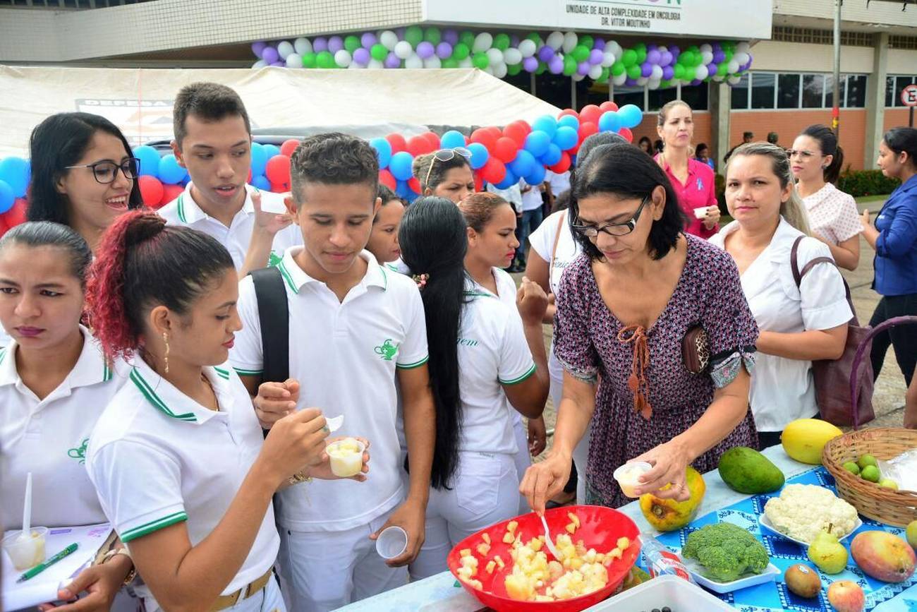 Centenas de pessoas entre colaboradores, usuários e acompanhantes participaram da ação de educação em saúde que marcou a comemoração dos dois anos de funcionamento da Unidade de Alta Complexidade em Oncologia Dr. Vitor Moutinho (Unacon), em Tucuruí, no sudeste paraense, nesta quarta-feira, 18. Na foto, degustação nutricional.