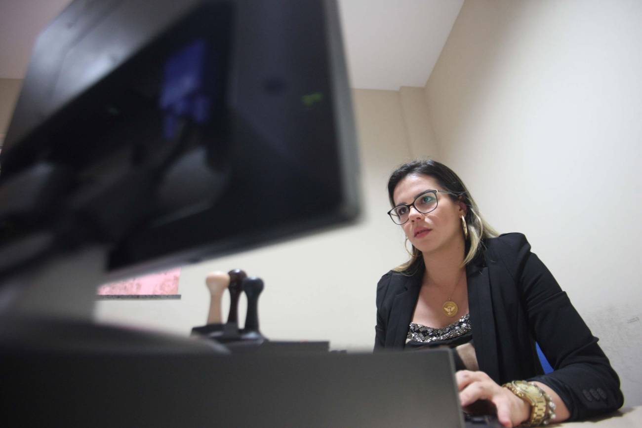 No mesmo concurso de Fernanda, também destacamos outra delegada. Karina Campelo (foto), de 32 anos, hoje diretora interina da Delegacia de Prevenção e Repressão a Crimes Tecnológicos (DPRCT). O caminho profissional foi um pouco diferente e dividido entre Ministério Público (MP) e Polícia Civil (PC). “Minha relação com a polícia sempre foi de namoro. Ficava admirando, achava muito bonito, mas tinha aquele medo da família. Quando eu falava em ser policial, não incentivavam muito, embora hoje eles tenham muito orgulho. Na faculdade, eu queria ser Promotora de Justiça, mas achava maravilhoso ser policial. Até dizia: eu quero casar com o MP, mas namoro com a polícia”, comenta em tom de brincadeira.