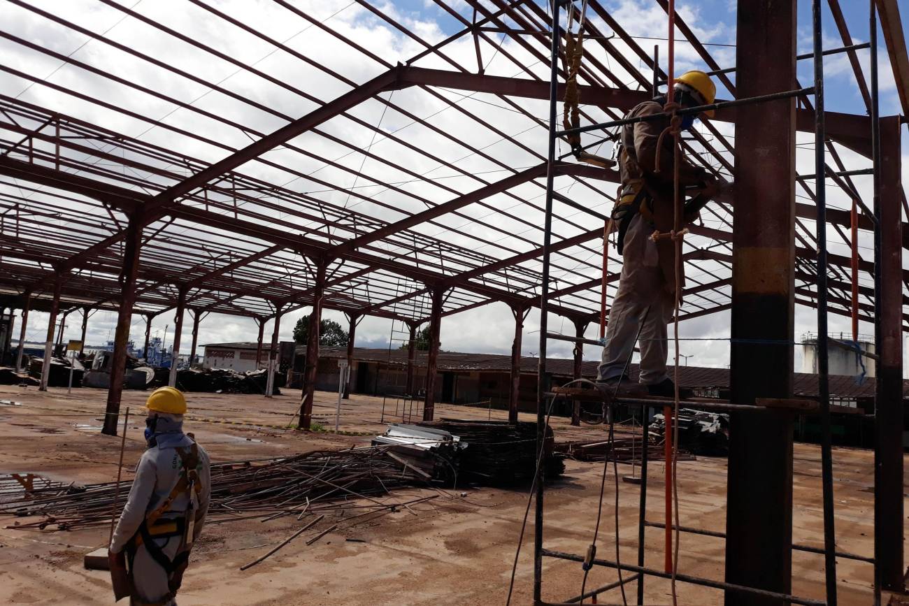 Avançam as obras do Terminal Hidroviário de Cargas e Passageiros de Santarém (foto), na região oeste. Segundo a Companhia de Portos e Hidrovias do Estado (CPH), depois de concluído, o espaço deve movimentar em média de 50 mil a 60 mil passageiros por mês, além suprir definitivamente a demanda de trabalhadores, donos de embarcações e da população da região que usa o modal hidroviário. Na foto, trabalhadores atuam na restauração da parte metálica do local onde funcionará o terminal de cargas.