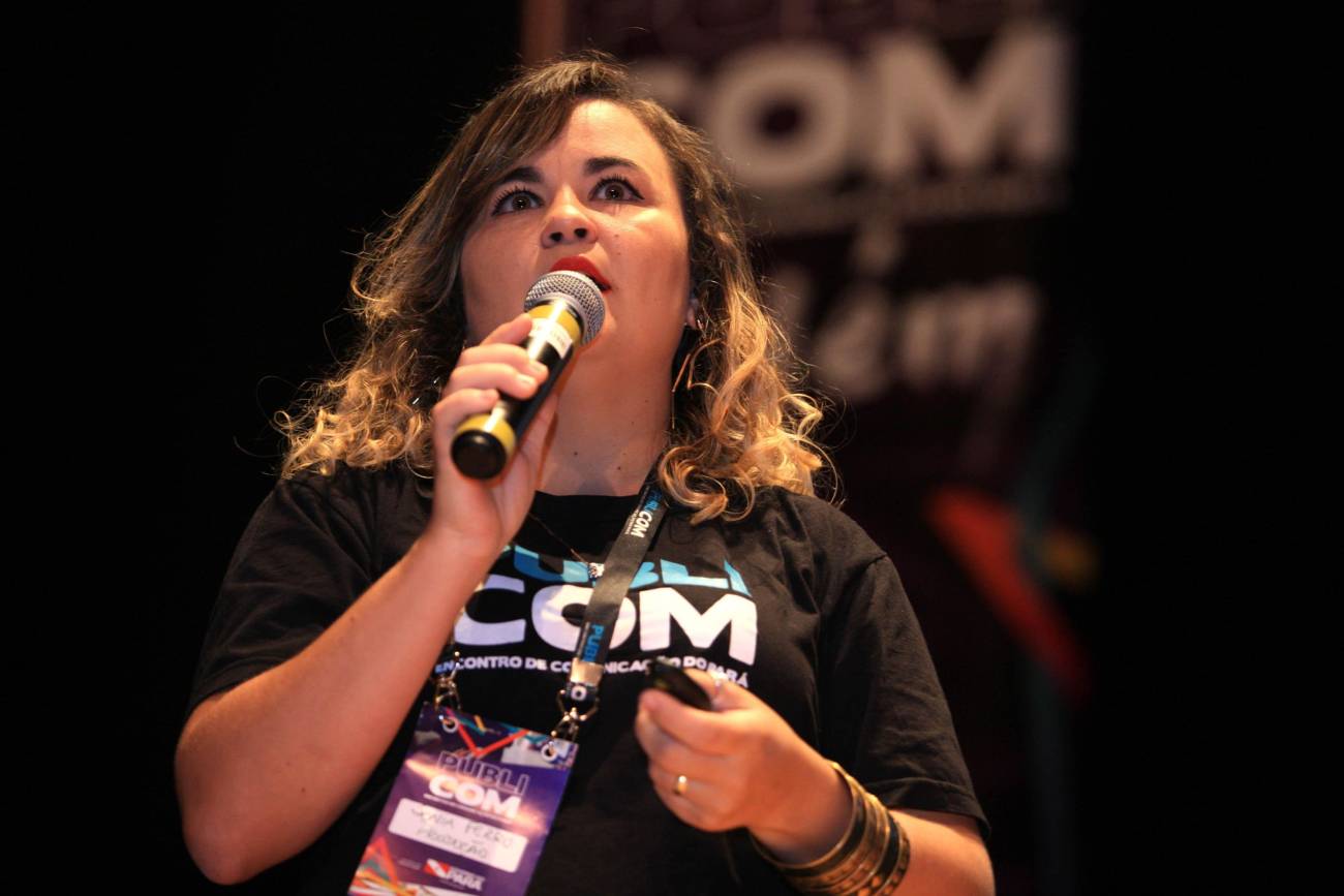 Publicom 2018. O Encontro de Comunicação ocorreu na segunda (11) e terça-feira (12), no Teatro do Sesi, em Belém, e reuniu centenas de participantes. Na foto, a jornalista Sônia Ferro, da organização do encontro.