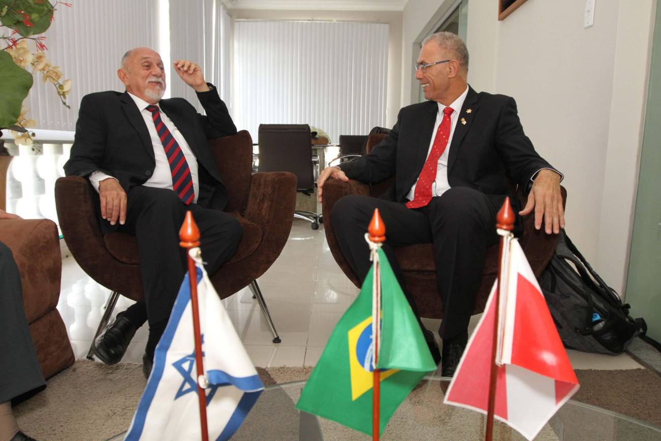 Segurança, tecnologia, educação e recursos hídricos foram alguns dos temas em pauta durante encontro entre o governador Simão Jatene e o embaixador de Israel no Brasil, Yossi Shelley, na tarde desta quarta-feira (13), no Palácio do Governo, em Belém. A reunião também contou presença do presidente do Centro Israelita do Pará, Marcos Soares e dos representantes da comunidade israelita, Ana Bentes Bloch e Elias Ramiro Bentes. Com a visita, o País do oriente médio busca estreitar as relações com o Estado e iniciar a construção de parcerias e cooperações em setores estratégicos como ciência, tecnologia e conhecimento. Entre os temas debatidos está a questão da segurança. Israel possui, por exemplo, uma grande expertise em tecnologias utilizadas na área. “Temos um grande conhecimento no que diz respeito à tecnologia para a segurança. Apresentamos algumas utilizadas em nosso País, como softwares de monitoramento, rastreamento, entre outros, que podem ser interessantes para o governo do Pará”, afirmou o embaixador Yossi Shelley. As possibilidades de contribuição também incluem intercâmbios e capacitação profissional na área. FOTO: CRISTINO MARTINS / AG. PARÁ DATA: 13.06.2018 BELÉM - PARÁ